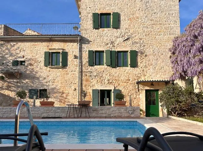 Køkkenudstyr, et køleskab og kaffemaskiner/tekedler er også til rådighed for gæsterne. Den nærmeste lufthavn er Pula, cirka 29 minutters kørsel fra overnatningssted. Det har også en gårdhave med udsigt over poolen. Der er cykling og vandreture på stedet.